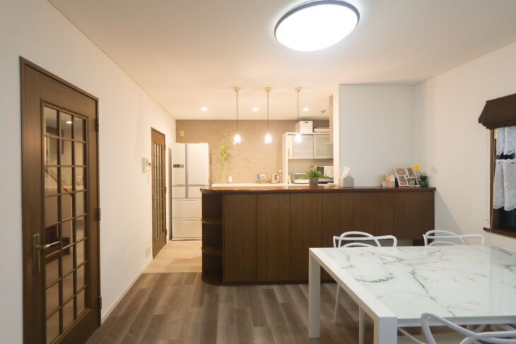【亀岡市】外壁・屋根から水まわりまで~ご予算内で叶えたペンダントライトが映えるリフォーム~