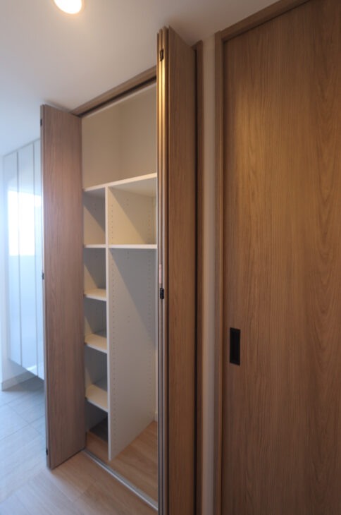 日々使うものはオープン収納ですが、お布団などの季節ものは押し入れに扉をつけて収納し、